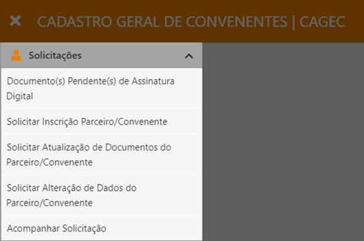 e no canto superior esquerdo da página para acessar "SOLICITAÇÕES e CONSULTAS"